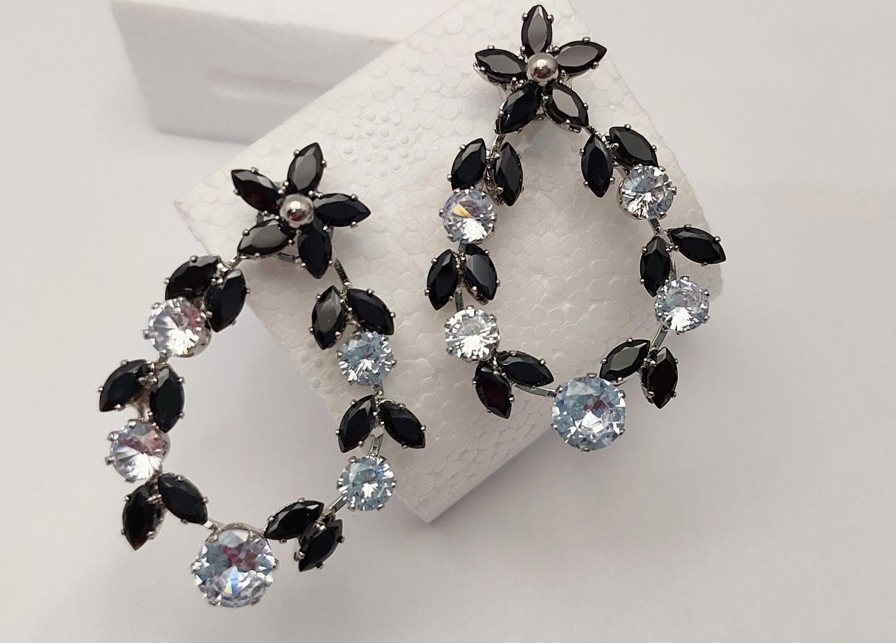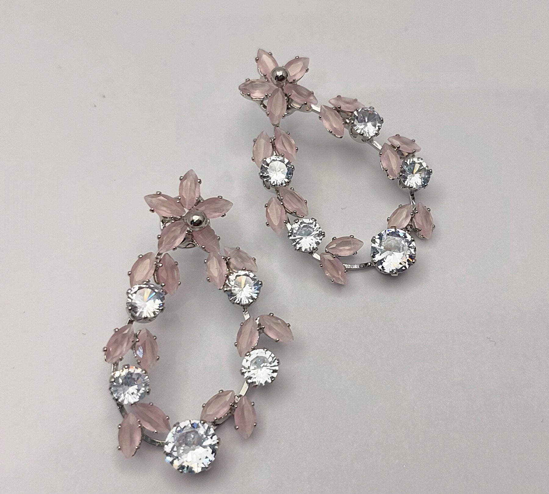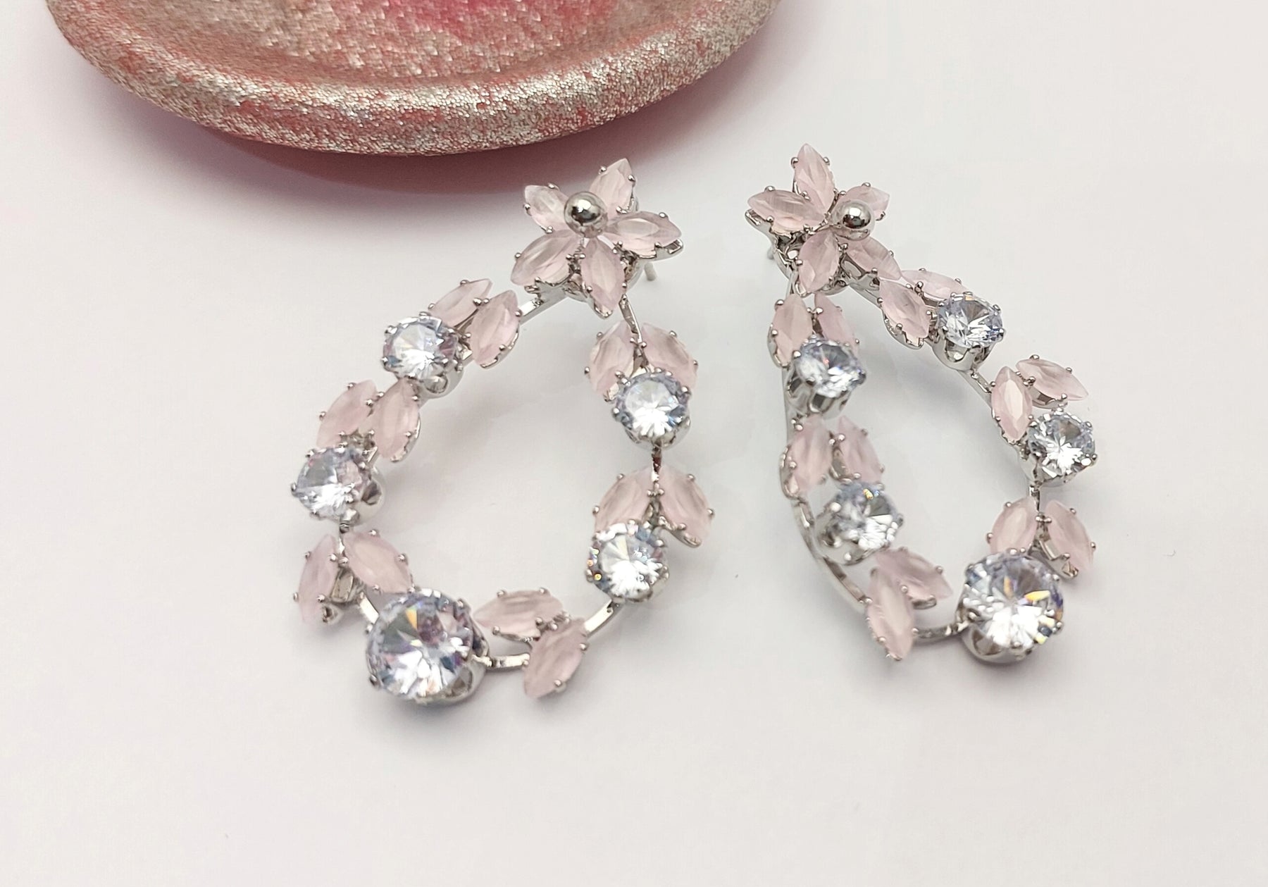 These elegant and funky floral pattern stud earrings feature loops of sparkling diamantes on a stainless steel base. Perfect for teens, party wear, and gifting.